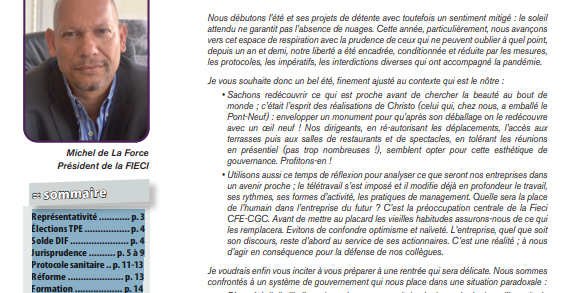 Représentativité ………… p. 3 Élections TPE …………….. p. 4 Solde DIF …………………. p. 4 Jurisprudence ………. p. 5 à 9 Protocole sanitaire .. p. 11-13 Réforme ………………… p. 13 Formation ……………… p. 14 Powered by WPeMatico