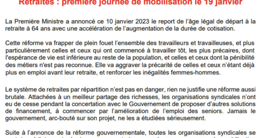 Retraites – Nous appelons donc les salariés à se mobiliser massivement dès le 19 janvier sur tout le territoire. Powered by WPeMatico