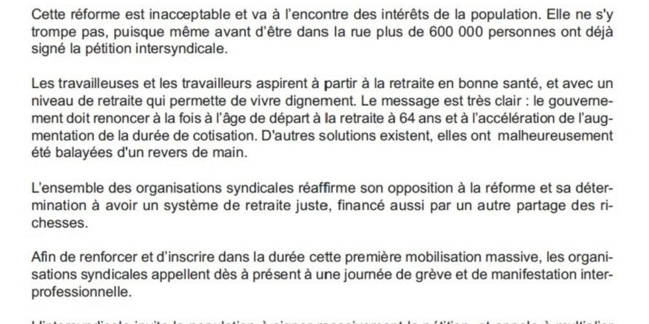 L’intersyndicale, unie et déterminée, appelle à une nouvelle journée de mobilisation le 31 janvier pour demander le retrait du projet de réforme. Powered by WPeMatico