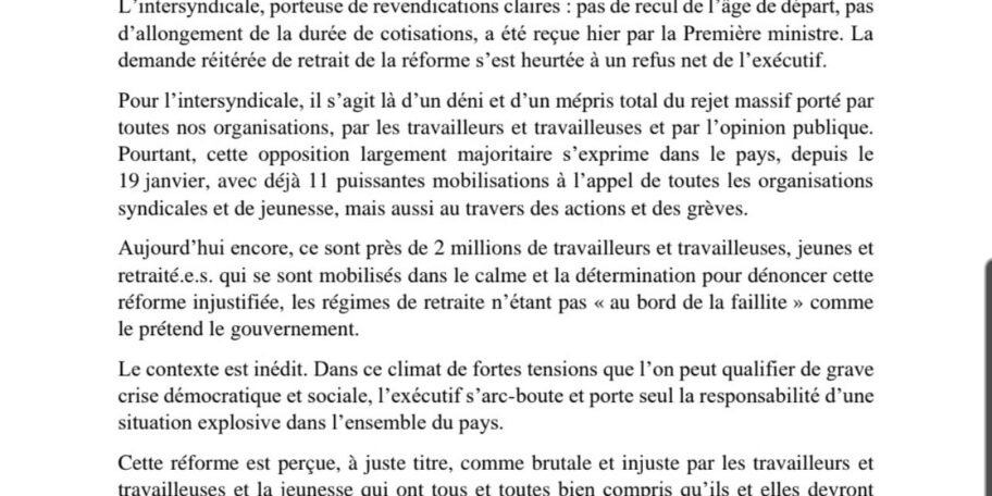 L’intersyndicale appelle à une journée de mobilisations et de grève le 13 avril et soutient toutes les actions et initiatives intersyndicales de mobilisations, y compris le 14 avril, pour gagner le retrait de cette réforme. Powered by WPeMatico