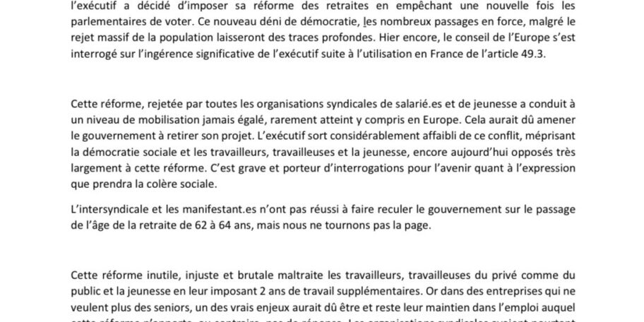 L’intersyndicale et les manifestant.es n’ont pas réussi à faire reculer le gouvernement sur le passage de l’âge de la retraite de 62 à 64 ans, mais nous ne tournons pas la page. Powered by WPeMatico