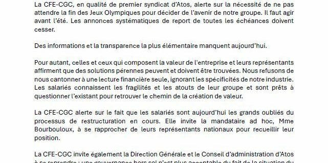 Nous, les salariés d’Atos, avons passé plus de deux ans dans l’attente sans qu’aucune décision ne soit, prise, ni qu’aucune information claire ne nous soit transmise sur l’état du groupe et sur ses perspectives de sortie de crise. Powered by WPeMatico