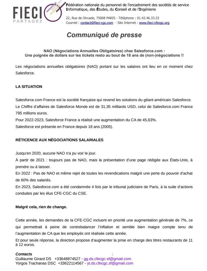 DetailsLes négociations annuelles obligatoires (NAO) portant sur les salaires ont lieu en ce moment chez Salesforce. Powered by WPeMatico